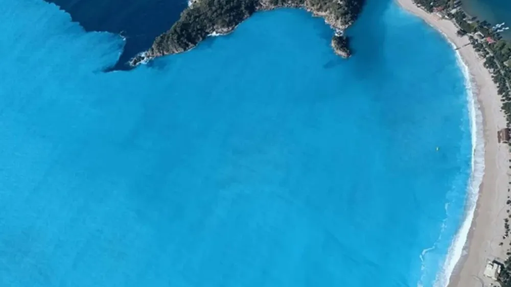 Ölüdeniz'in rengi değişti. Muğla'nın Fethiye ilçesindeki dünyaca ünlü Ölüdeniz, iki gündür etkili olan kuvvetli yağışların ardından güneşli havayla birlikte turkuaz renge büründü.