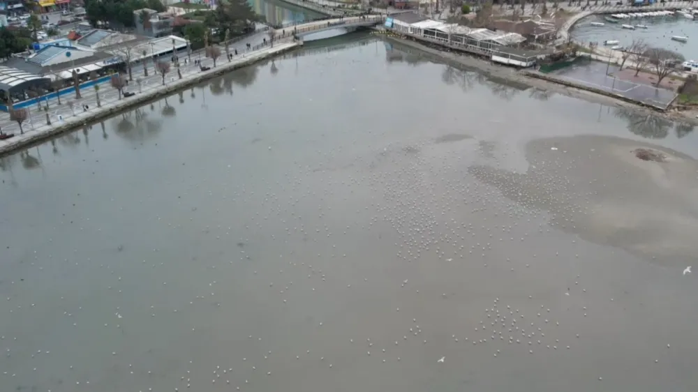 Silivri’nin Piri Mehmet Paşa Mahallesi’nde denizin geri çekilmesiyle birlikte deniz tabanı görünür hale geldi. Bazı noktalarda kum adacıkları oluşurken, ortaya çıkan manzara vatandaşlar tarafından cep telefonlarıyla kaydedildi.