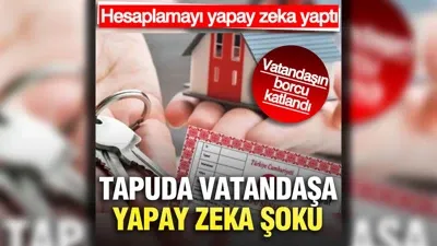 Sinop'ta ikamet eden Hüseyin Öztürk, 2 milyon 700 bin liraya 1+1 ev satın aldı. Gelir İdaresi Başlanlığı iddiaya göre yapay zeka kullanarak evin değerini tekrar hesapladı. Hesaplama sonucu evin bedeli 4 buçuk 5 milyon lira bandında çıktı. Gelir İdaresi Başkanlığı, Öztürk'e ek vergi alacağı çıkardı. Evinde tebligatı gören Öztürk, 26 bin lira daha borçlandığını öğrendi.