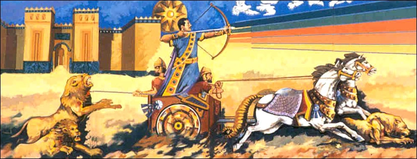 1980'lerin sonlarında, Saddam Hüseyin'i "Fars aslanlarını" ezen Asur Kralı Aşurbanipal olarak gösteren malum duvar resmi de Irak'ın dört bir yanında var edilerek Irak halkına yönelik propaganda yapılmıştır.