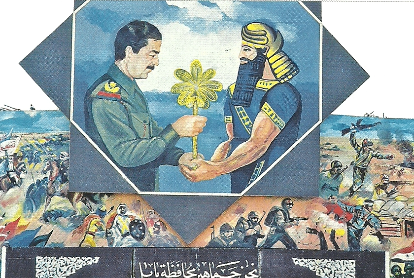 Saddam'ın Babil hükümdarı ve savaşçı II. Nebukadnezar’a olan takıntısı gayet iyi belgelenmiştir. Saltanatı sırasında Irak, tümü Saddam'ı Mezopotamya hükümdarları veya sembolleri ile üst üste tasvir eden propaganda posterleri, duvar resimleri ve antik sanat eserleri tarzında yontulmuş kabartmalarla doluydu.